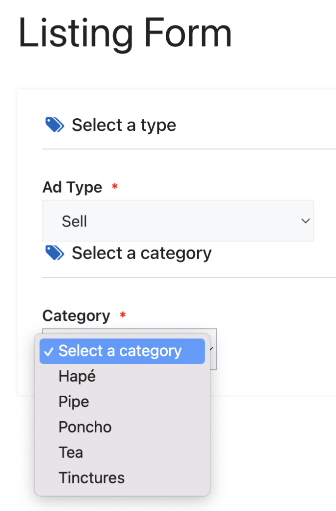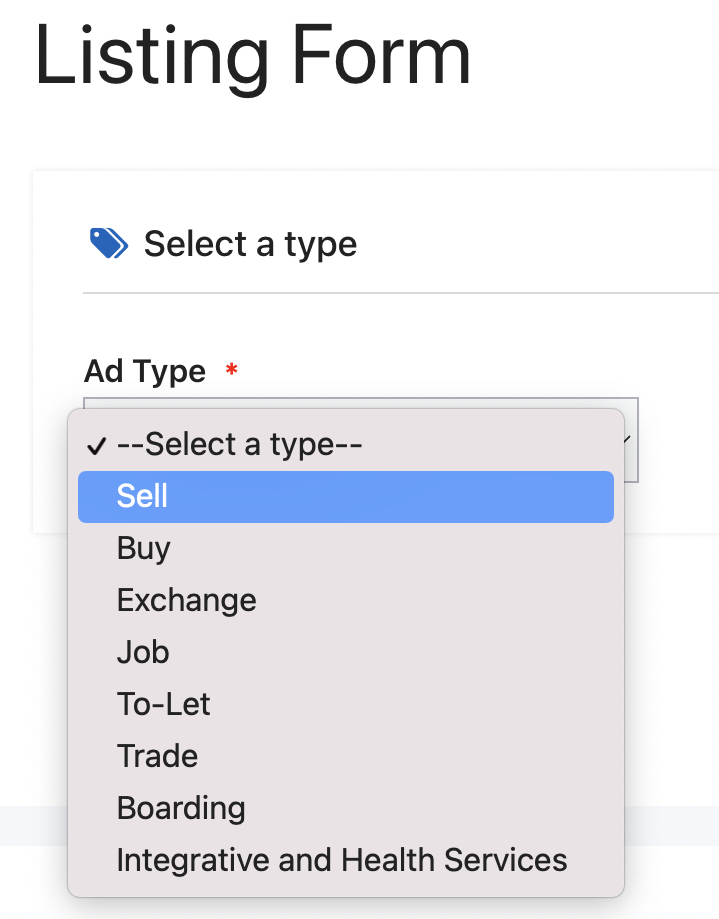1) Choose a Listing Type:
